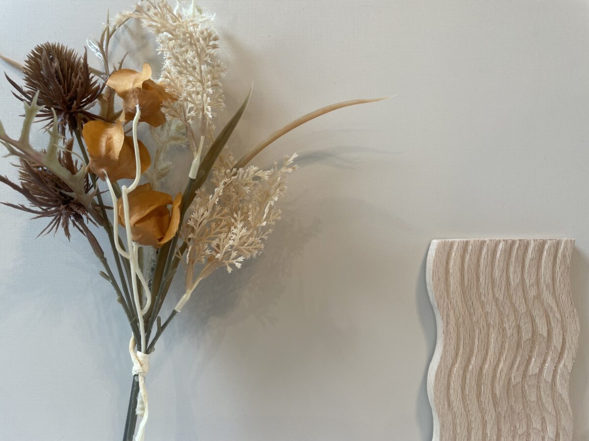 「くすみカラー×自然素材」で温もりをプラス