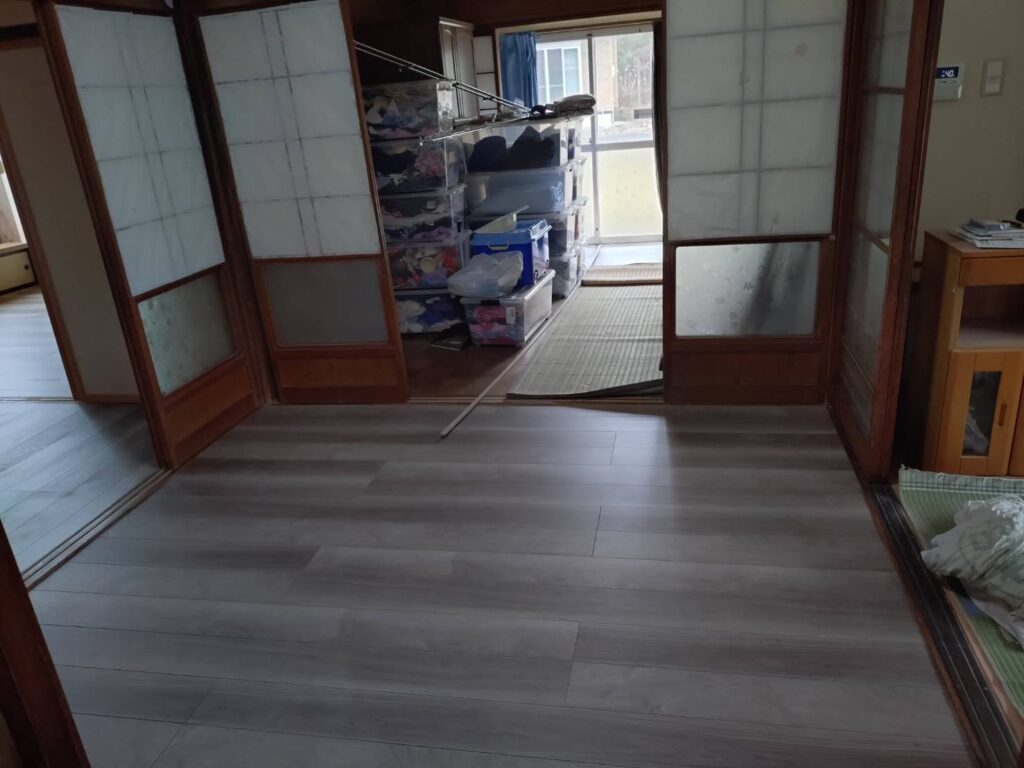 工事は既設分の解体・床・天井の張替・クロス貼替・断熱工事・屋根補修・電気工事・玄関交換・窓ガラス修理・建具修理・外壁工事・清掃まで