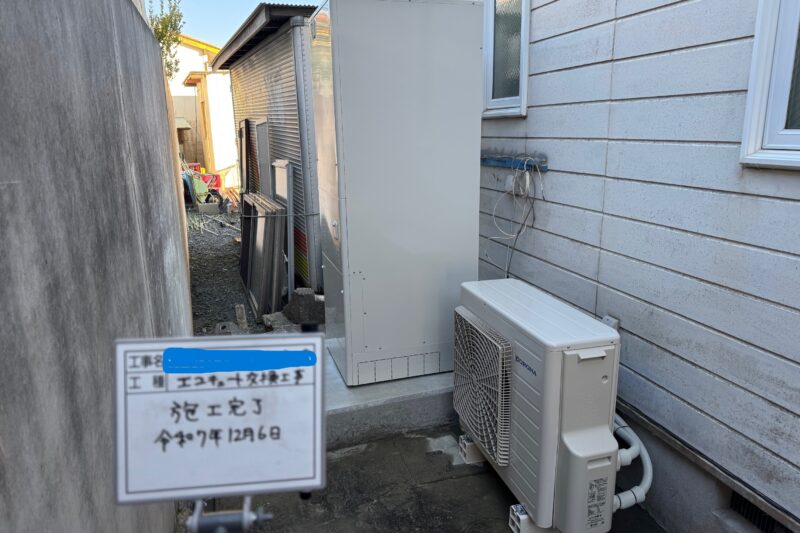 今回エコキュートを交換することになったきっかけは、使用していたものが20年以上経過していて故障してしまったこと。広告のチラシを見ていただいたのをきっかけに弊社にお越しくださいました。分からないことなどもその都度聞いてくださり、ご要望等も正確にお伝えしていただきまして工事する運びとなりました。
