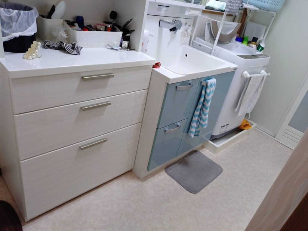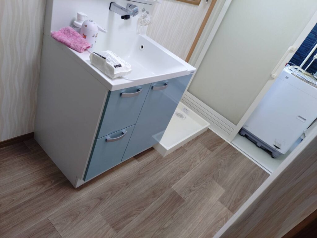 今回は、脱衣所のクッションフロア張り替えとなります。とてもおしゃれな雰囲気で他のお部屋の雰囲気ともマッチしていて統一感がでました。