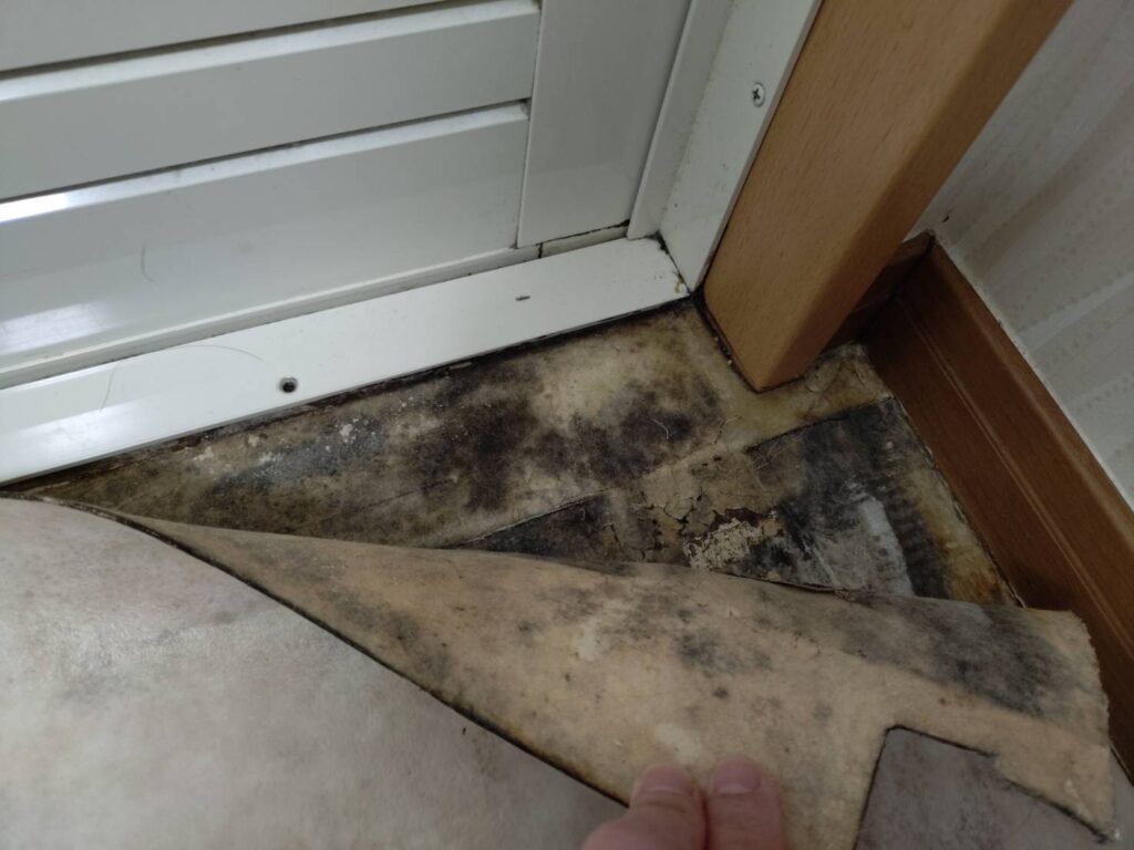 今回、張り替えすることとなったきっかけは、水害があった6~7年ほど前、家の施工会社に相談し浴室をリフォームし、脱衣所のクッションフロアも張り替えしたのだが端から剥がれてきてしまっている。めくれている部分の下は黒くカビが広がっていたため、工事することとなりました。床自体は劣化しおらず、カビ防止剤を塗布し、クッションフロアの張り替えをすることとなりました。毎日使用する場所ですから、綺麗にしておきたいですよね✨お色味もお客様にお選びいただき、満足していただくことができました☺